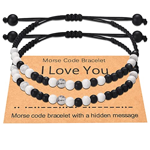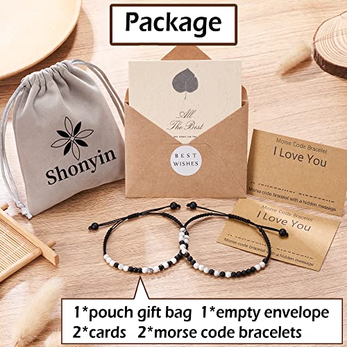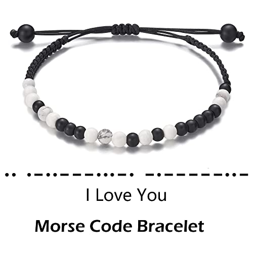 Shonyin - Shonyin Valentines Day Gifts for Her Him, I Love You Morse Code Bracelet Couple Bracelets for Boyfriend Girlfriend Husband Wife Birthday Anniversary Jewelry Gift, 10.5 inches, Metal, Agate