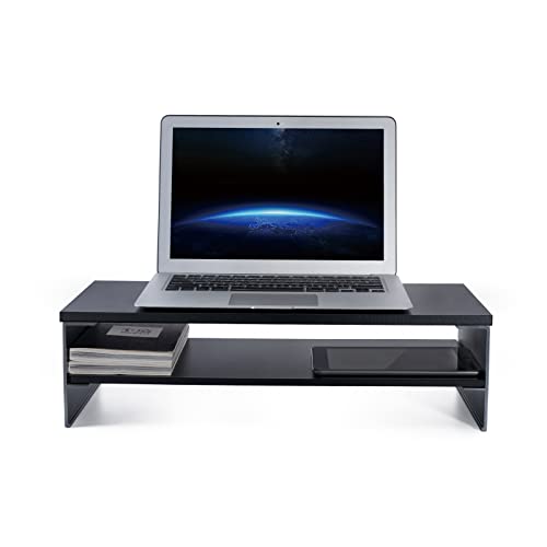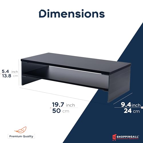 - [SPACIOUS 2-TIER STORAGE] Measuring at 50x24x13.8cm (approximately 19.7x9.4x5.4 inches), this monitor riser offers ample space on two levels, ensuring all your essentials, from keyboards to stationery, are easily accessible yet out of the way.