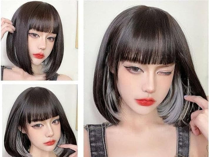 - Special Design: Fashion Short Bob Wig with Straight Front Bang, Ombre Dark Brown to Blue