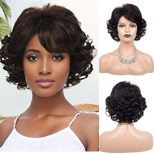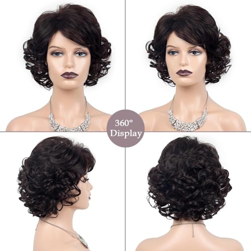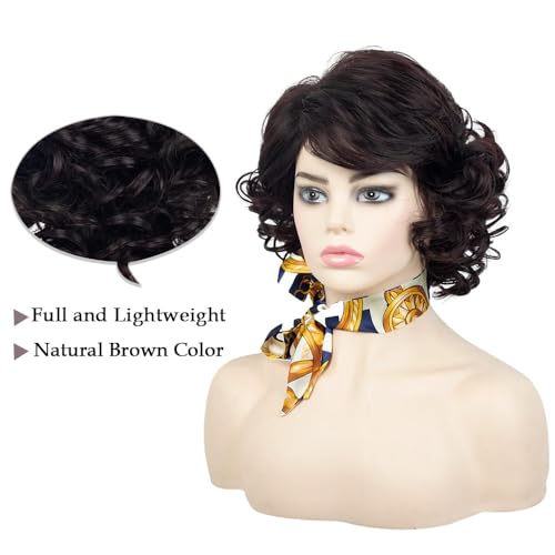Generic - Short Curly Black Hair Wigs for Women Ladies Natural Layered Synthetic Heat Resistant Hair Daily Wear -jw266-N4-DARK BROWN