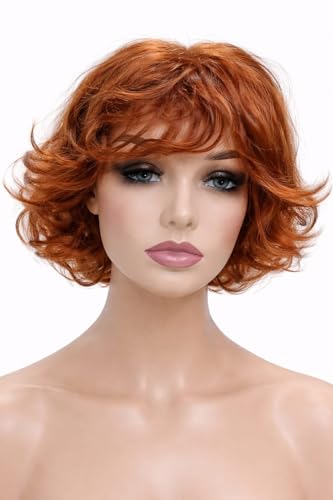Generic - Short Curly Red Copper Wig Front Bangs Bob Wavy Wigs for Women