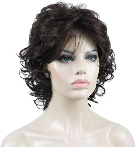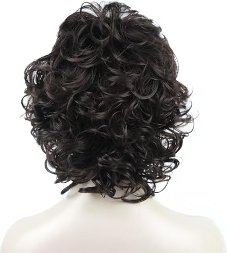 ECIF - Short Curly Synthetic Full Wigs for Women (Dark Brown) ECIF