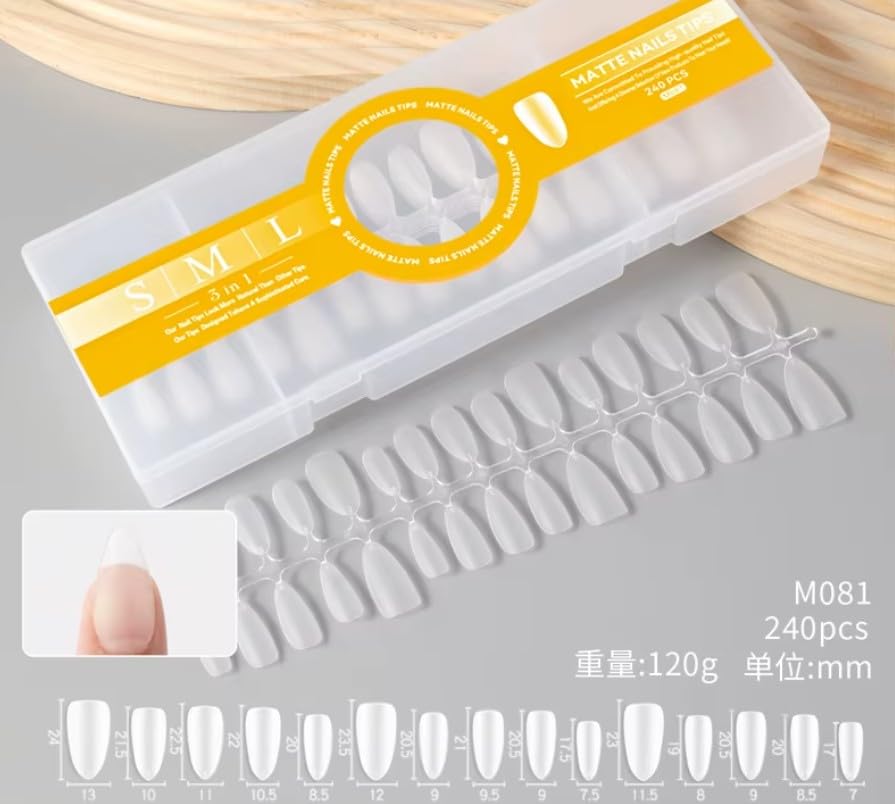 Generic - Short Nail Tips, 15 Sizes Full Matte Soft Gel, 240pcs Press On Acrylic, Fake Full Cover Nail Tips Pre-Shaped with Box (Short Almond)