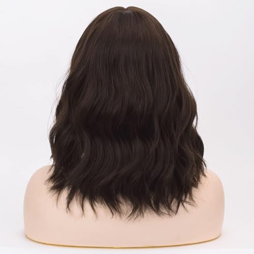 Generic - Short Wavy Dark Brown Wig with Bangs Natural Looking Heat Resistant Fiber (Dark Brown with Bangs)