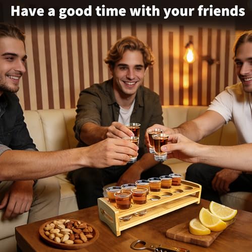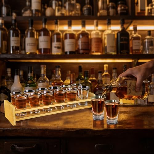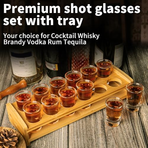 - 【Quality Tray and Glass】: The shot glass set includes a well-made wooden tray + 12 packs clear shot glass. The wooden holder is steady and sturdy to organize and carry the transparent glass, perfect for serving guests.