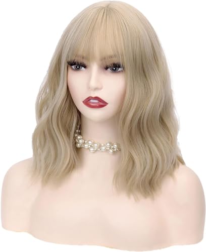 Generic - شعر مستعار طول الكتف مع غرة لون اشقر للنساء لحفلات الهالوين والحفلات التنكرية