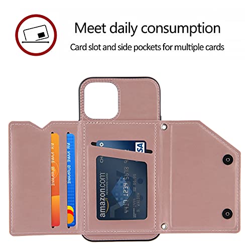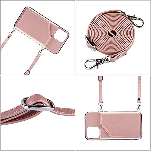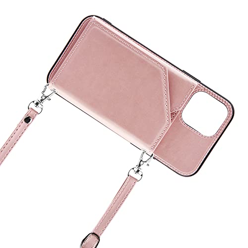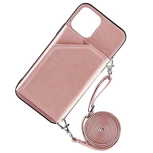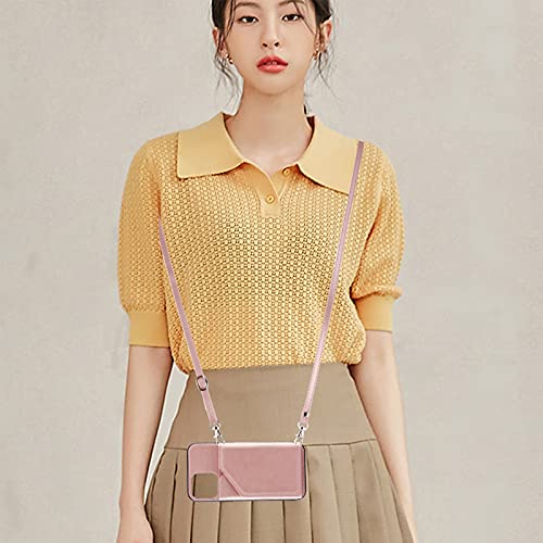 HSRWGD - Shoulder Strap Case for iPhone 13 6.1 inch Lanyard Wallet Case, Cross-Body Girly Bumper Cover (Rose Gold,iPhone 13)