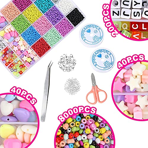 Showay - Showay Beads for Jewelry Making Kit 16 Colors Bead Friendship Bracelets Kit with Alphabet Letter Beads about 8280pcs Bracelet Charm Beads and Elastic String for Bracelet Jewelry Gift
