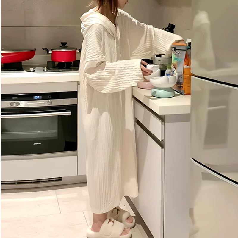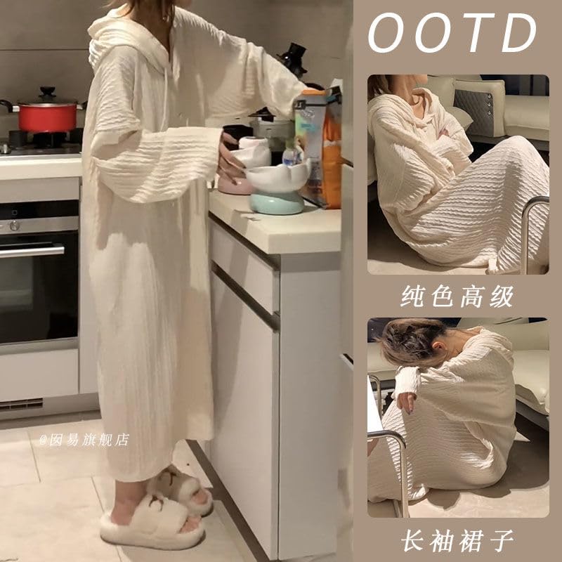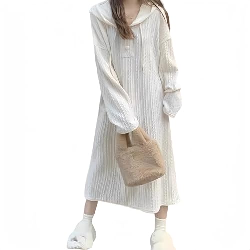 SHOWDAY - SHOWDAY Hooded Nightgown for Women,Loose Fit,Long Sleeves,Sweet Student Style,Solid Color Long Nightgown Sleepshirt, Princess Style Sleeping Dress Maternity Nightgown Sleepwear