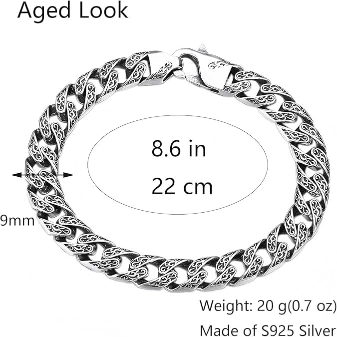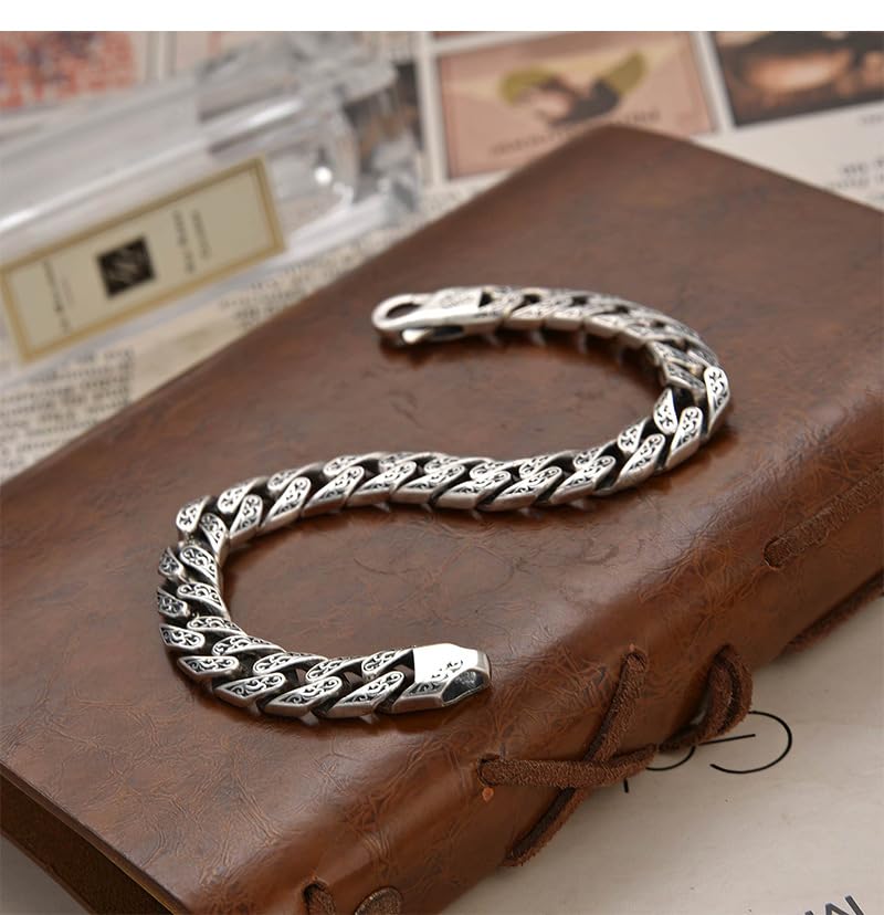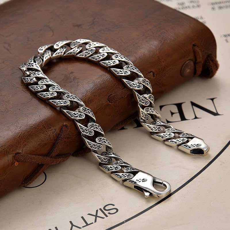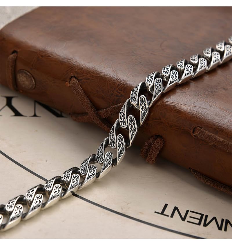 SHOWDAY - سوار سلسلة من فولاذ مقاوم للصدأ، سوار فضي منقوش بحلقات كوبية للرجال، مشبك شديد التحمل، مجوهرات كلاسيكية لراكبي الدراجات النارية للرجال من شو داي
