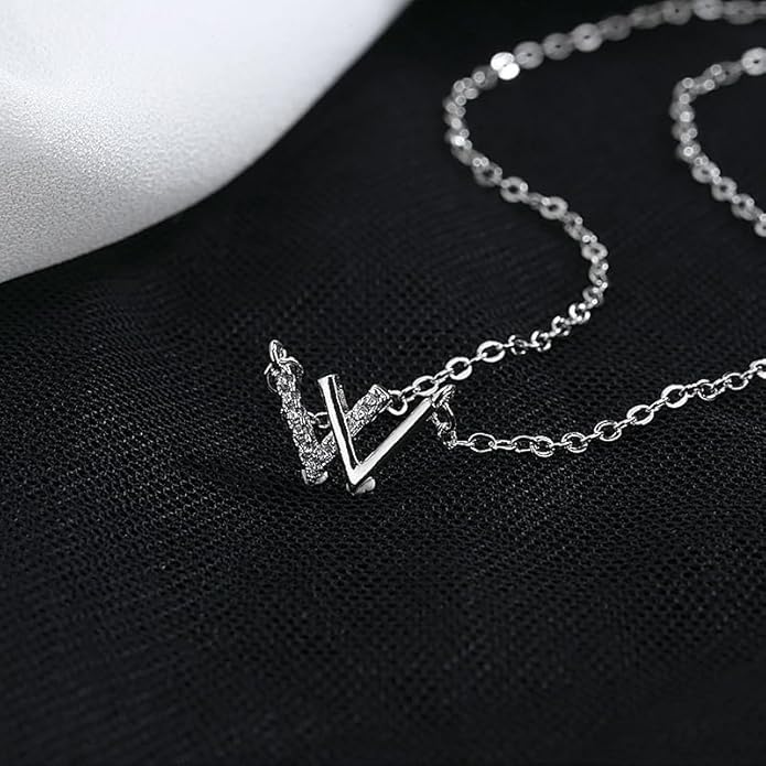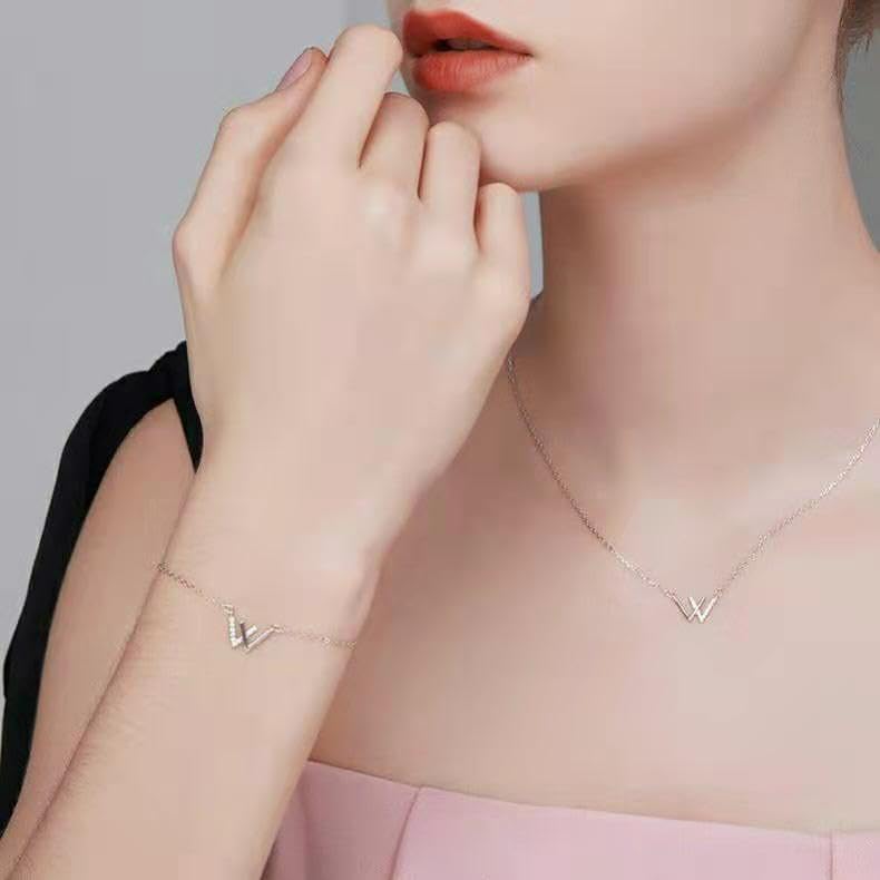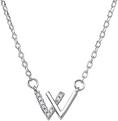 SHOWDAY - SHOWDAY Metal Letter W Pendant Necklaces Bracelet for Women Girls, Personalized Name A-Z Capital Necklace Bracelet Jewelry Gifts for Women Girls Diamond Double V Necklaces for women