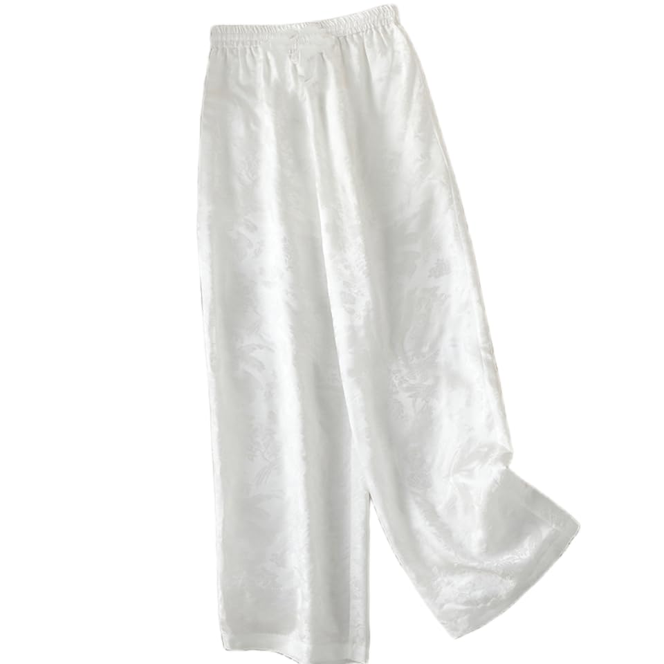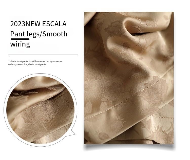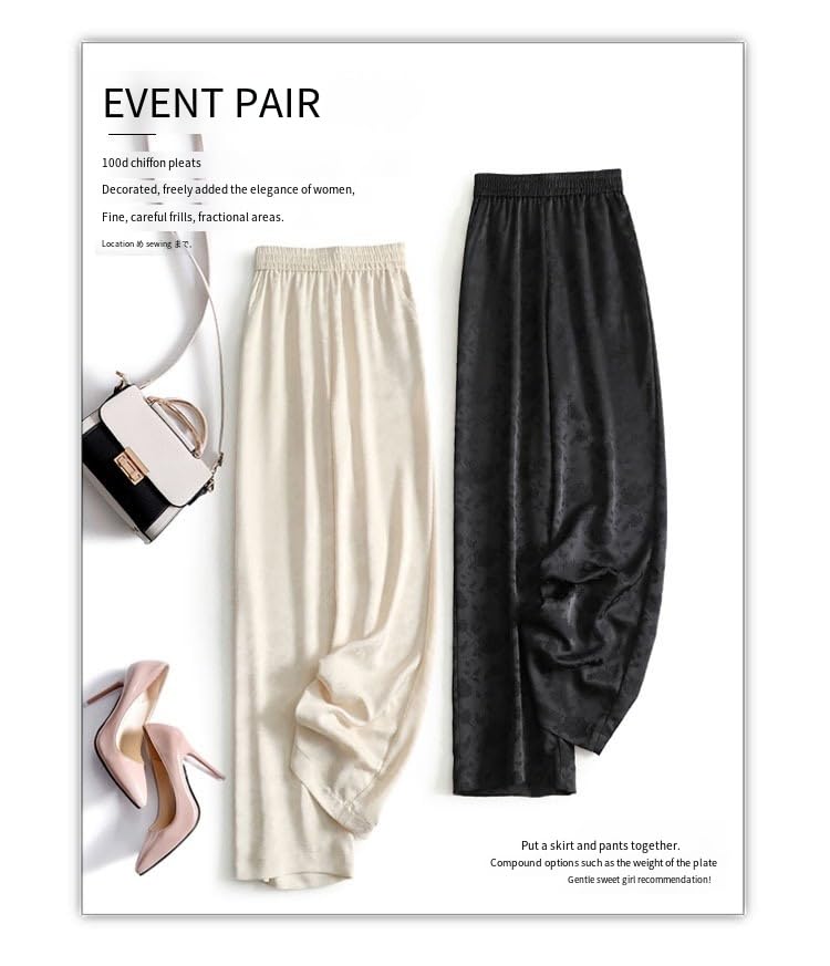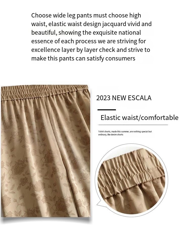 Generic - Showday Satin High Waist Wide Leg Trousers with Pockets, Floral Print, Straight Cut
