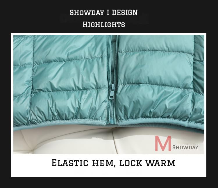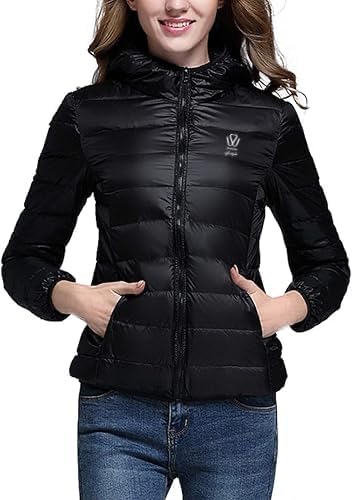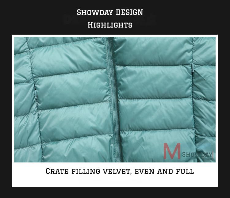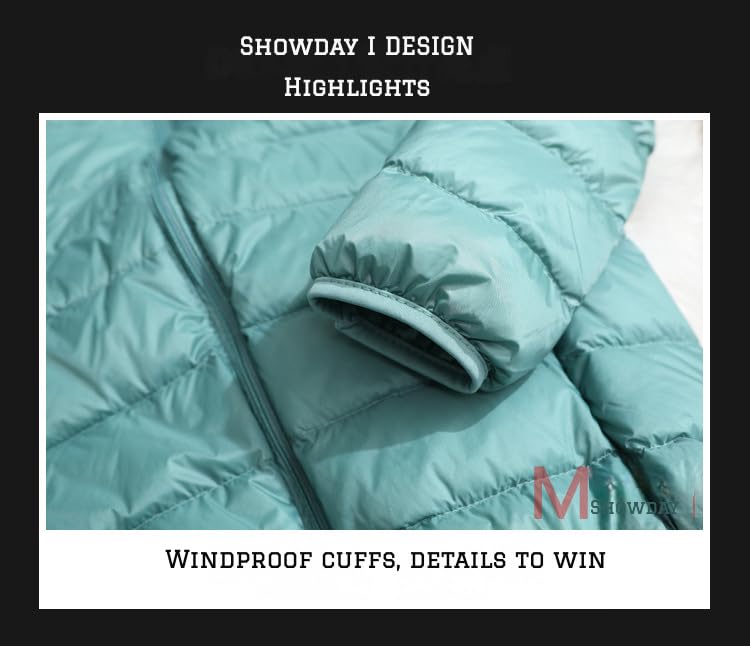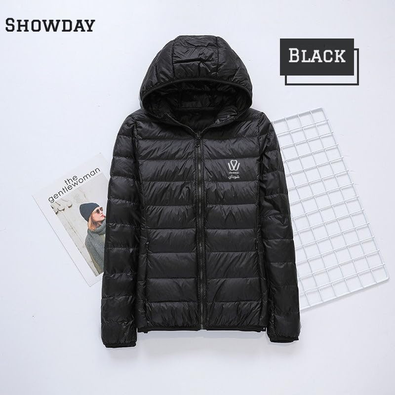 SHOWDAY - Showday Women's Hooded Puffer Jacket Lightweight Quilted Padded Coat Pockets Zip-up Winter Warm Outerwear Long-Sleeve Water-Resistant Packable Puffer Jacket