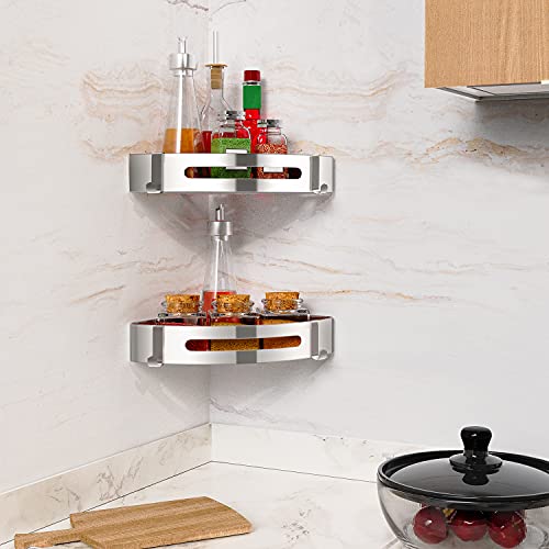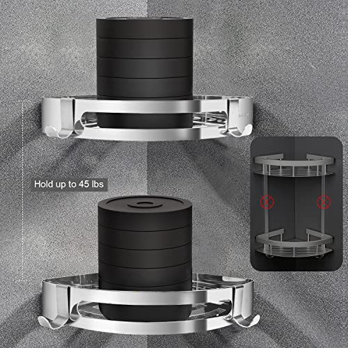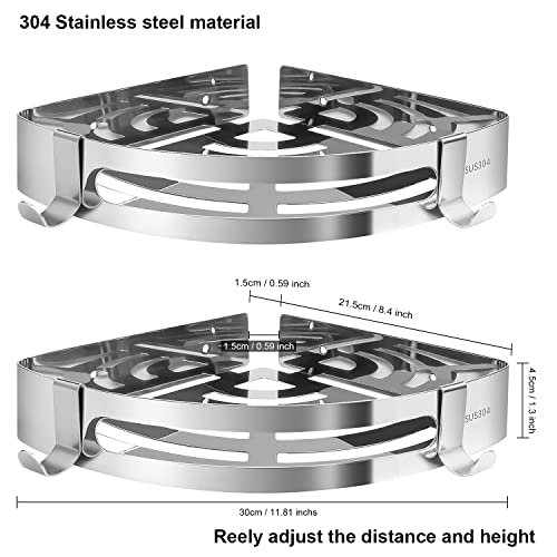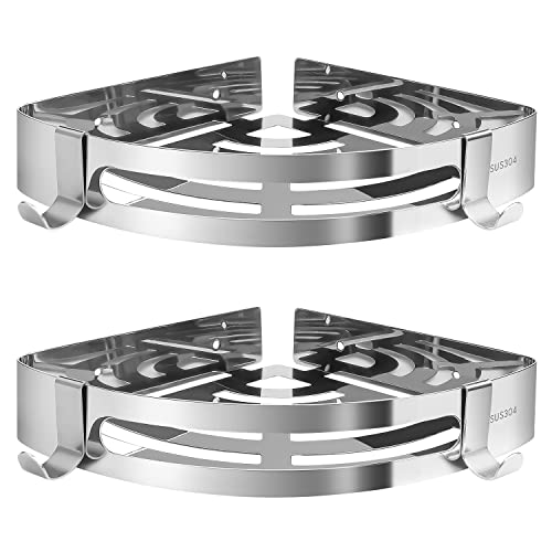generic - رف زاوية الحمام مع حلقات تعليق منظم حمام ركني بدون ثقب سلة مثبتة على الحائط تخزين مضاد للصدأ لاصق مناسب للمسكن الجامعي والمطبخ والحمام عبوة من قطعتين لون فضي