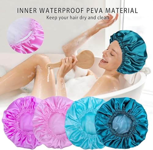 Generic - Shower Caps for Women, 1PC Elastic and Reusable Bath Caps, Double Waterproof Layers Shower Cap, Bathing Shower Caps, Environmental Protection Hair Bath Hat - Solid Color-RANDOM COLOR