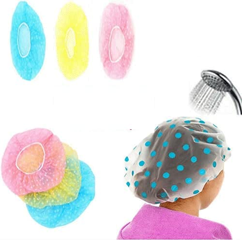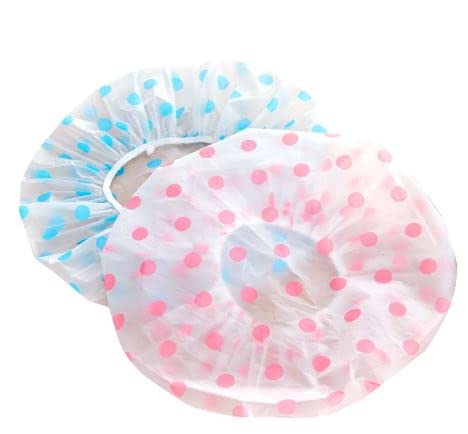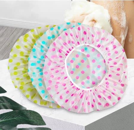 - Our three adorable polka dot shower caps come in three different colours: red, blue, and green. The intriguing and trendy design is straightforward and atmospheric. It may go with your everyday outfit and make you look more attractive. If you're having trouble deciding, these polka dot shower caps will undoubtedly suffice.