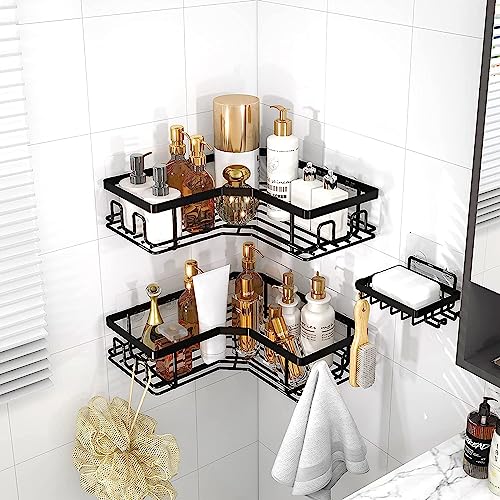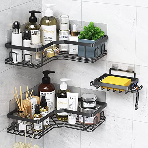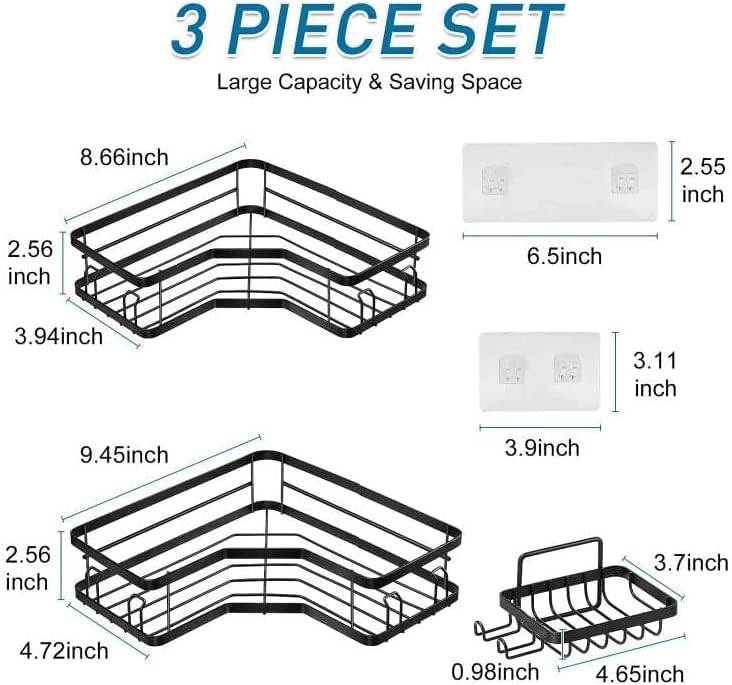 Coidak - رفوف زاوية الدش، علبة دش بدون ثقب، رف سلة منظم للحمام مع خطافات، حامل صابون يثبت على الحائط، 3 قطع