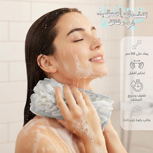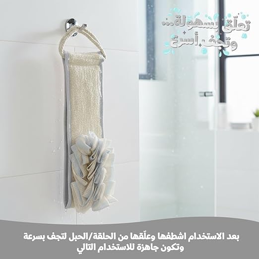 - Shower exfoliating towel designed to reach your back easily, helping remove daily buildup during every shower and leaving your skin feeling clean and refreshed.
