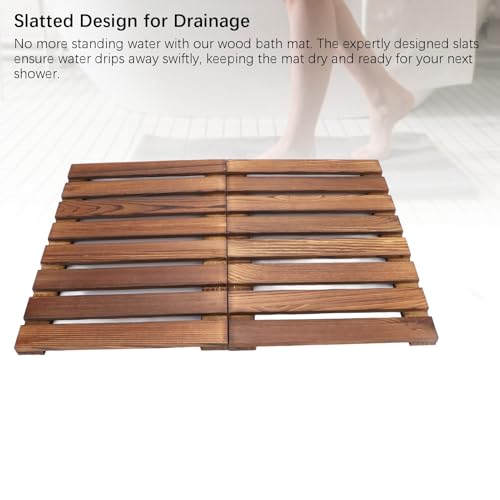 - 【Efficient Drainage】Say goodbye to standing water with the slatted design of this wooden bath mat. The carefully placed slats facilitate quick water drainage, preventing the buildup of stagnant water and keeping the mat dry and hygienic for your next use