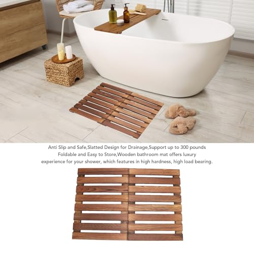 Ejoyous - Shower Mat for Bathroom, Foldable Wood Bath Mat Non Slip Bathtub Floor Mat for Indoor Outdoor Spa Sauna Pool Hot Tub, 23.23 x 16.22 Inch
