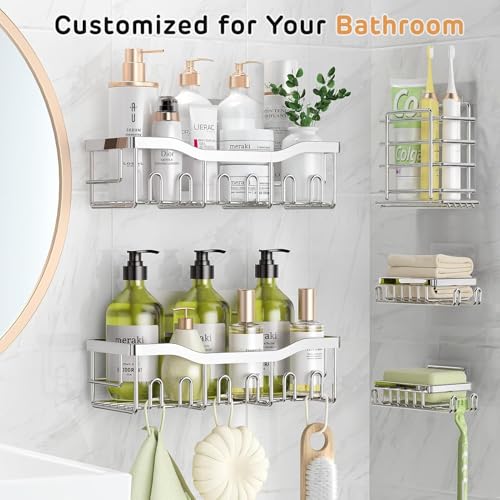 - 【حل تخزين الحمام】 قل وداعًا للحمام الفوضوي! سيحول منظم الدش اللاصق حمامك إلى مساحة نظيفة ومرتبة. كما أنه يجعل هدية مثالية للعائلة والأصدقاء. -