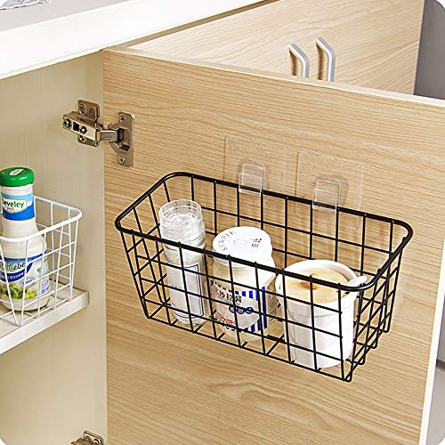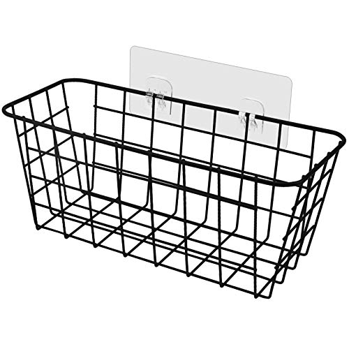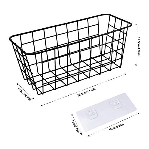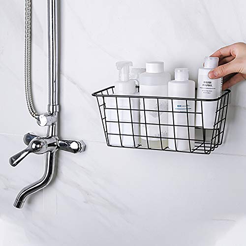 - [Metal Storage Baskets]: There is a black storage baskets and 2 self-adhesive hooks. The total size is 27.3 x 12.2 x 11.8 cm, can store shower toiletries, kitchen seasoning jars, saving space.