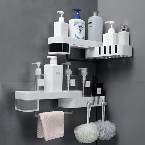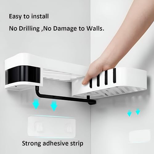 Generic - Shower Shelf - Durable plastic wall-mount organizer with adhesive backing for bathrooms and kitchens; space-saving with towel bar and sturdy shelves for shower, sink, and corners.