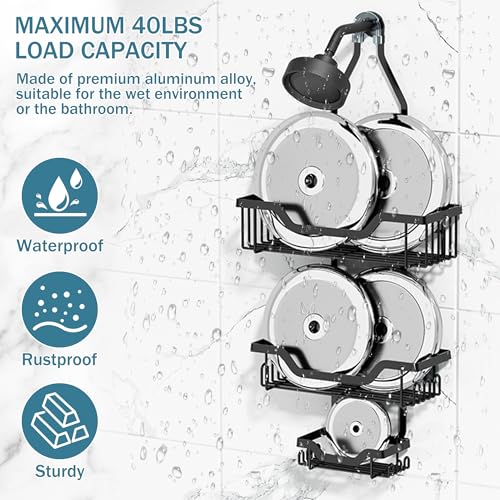 - Rustproof and quick draining: made of premium waterproof and rust-proof materials, the hanging shower trolley over the shower head ensures a long service life in wet conditions. The quick drainage of the hanging shower cart facilitates quick drying, prevents water accumulation and ensures a clean, dry storage space for your bathroom essentials.