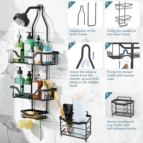 - Fits most shower heads: this hanging shower caddy fits most size shower heads. When you hang this bathroom organiser over your shower head, you can enjoy your bathing moments better, giving you a more comfortable bathing experience. It is aesthetic and suitable for home toilet toilet washroom bathroom, rented apartment, small rv bathroom stand and college dormitory.