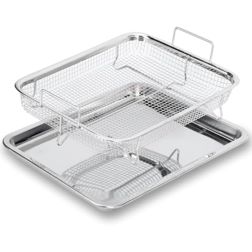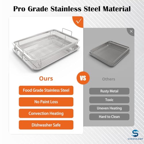 - Premium Quality & Durable: Made from high-quality stainless steel, this 2-piece air fryer basket and crisper tray set is designed for long-lasting performance, withstanding high temperatures without warping or rusting.