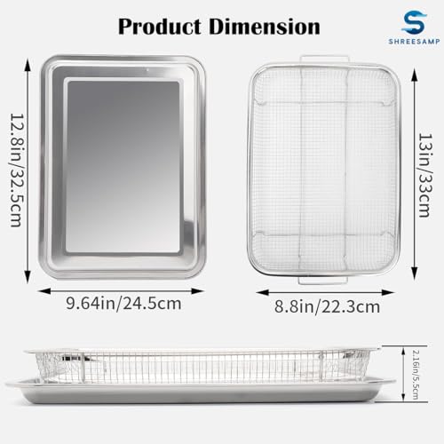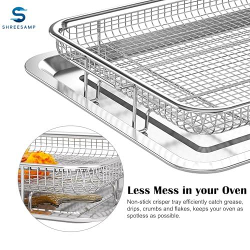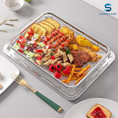 SHREESAMP - Air Fry Basket With Tray, 2 Piece Stainless Steel Air Fryer Basket for Oven, Crisper Tray and Basket, Oven Air Fry Pan Mesh Basket Set, Crisper Oven Tray for French Fry/Frozen Food (Silver)
