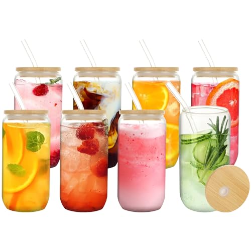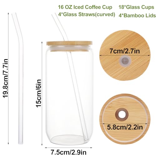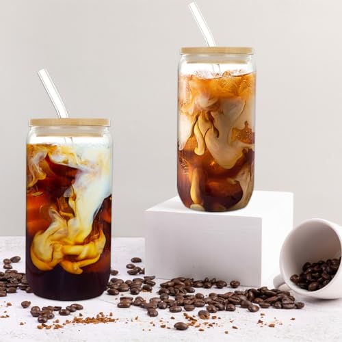 - 【 Functional Design 】 Each smoothie glass comes with a bamboo lid and straw, providing a secure and convenient way to enjoy your drinks on the go. The 500ml capacity is ideal for serving iced coffee, cocktails, tea, juice, soda, and more, making these glass cups versatile companions for all your beverage needs