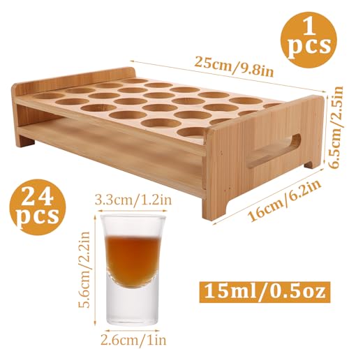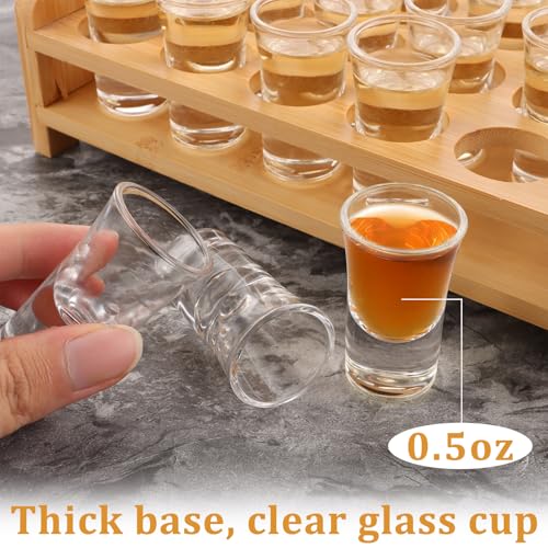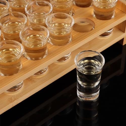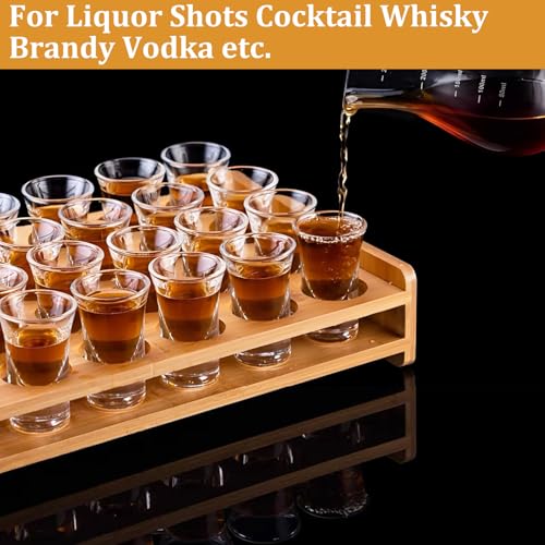 SHUESS - SHUESS Shot Glass Set of 24 15ml/0.5oz with Shot Glass Tray Holder Straight - Mini Clear Crystal Shot Glass with Thick Base - Shot Glasses Set for Whisky Brandy Vodka Rum and Home Party Bar