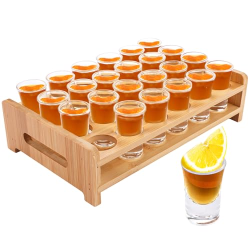 - 【 Complete Set with Straight Tray Holder 】 This set includes a straight tray holder that can hold all 24 shot glasses. The tray holder is designed to keep the glasses organised and securely in place, making it easy to serve and transport your shots. The sleek and simple design of the tray holder adds an elegant touch to any gathering or bar setup
