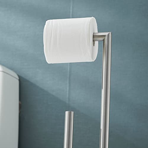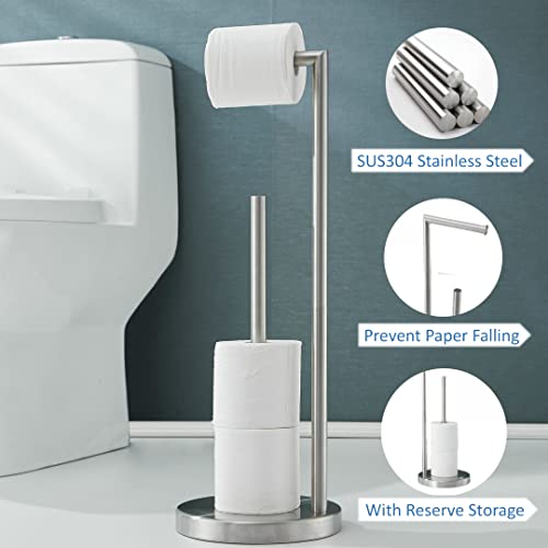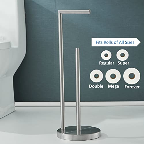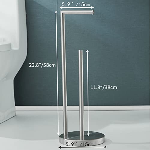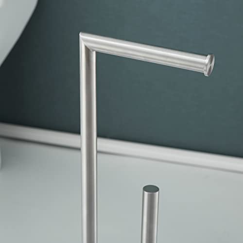 SHUNLI - SHUNLI Free Standing Toilet Paper Holder with Reserve Storage,Bathroom Roll Holder Tissue Dispenser Floor Stand,Rustproof SUS 304 Stainless Steel (Brushed Nickel)