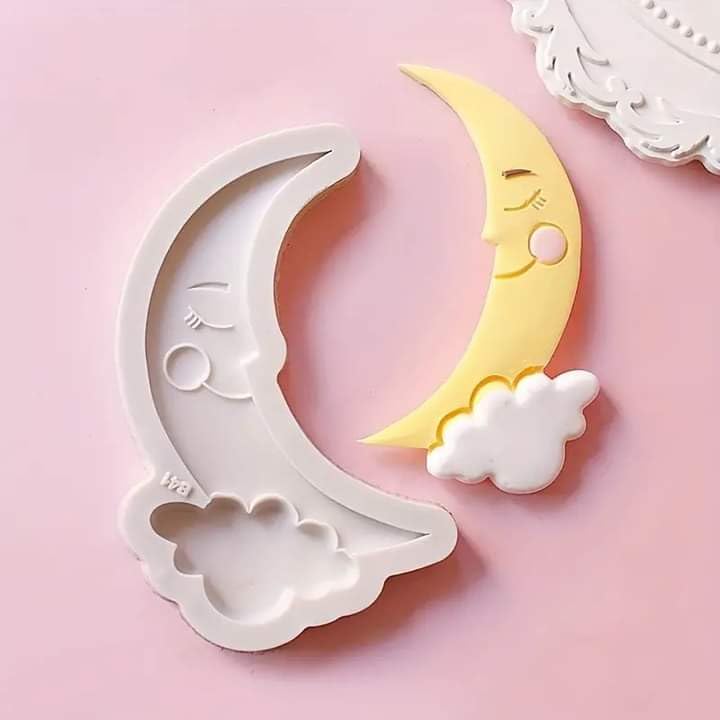Generic - Shy Moon Holding Cloud Silicone Mold Sugar Paste Sculpture Mold
