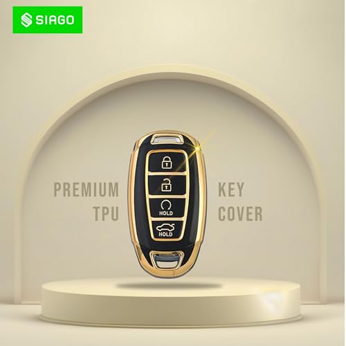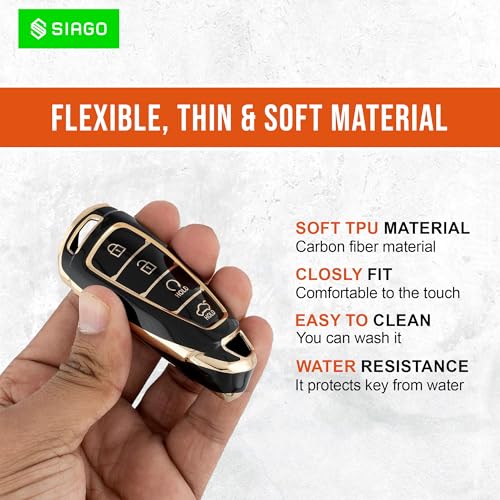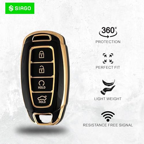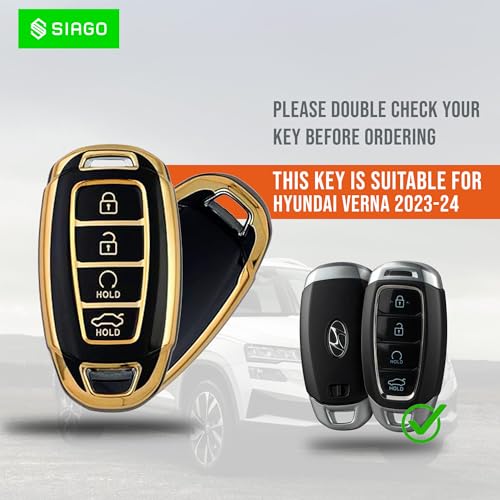 SIAGO - SIAGO TPU Key Cover Compatible with Hyundai Verna 2023 Car 4 Button Smart Key (Black Pack of 1)