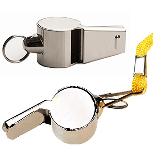 - صفارة تدريب معدنية قوية مع حبل قصير أصفر