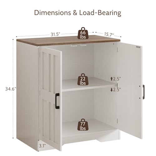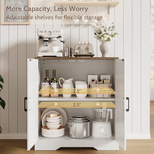 - [Ample Storage Space] Designed with two doors, a spacious top, and two roomy bottom cabinets, this sideboard storage cabinet offers plenty of space to keep your essentials organized and your space clutter-free. The right cabinet features a 3-level adjustable shelf with a 2.5" height range, allowing you to customize the storage to fit your needs.
