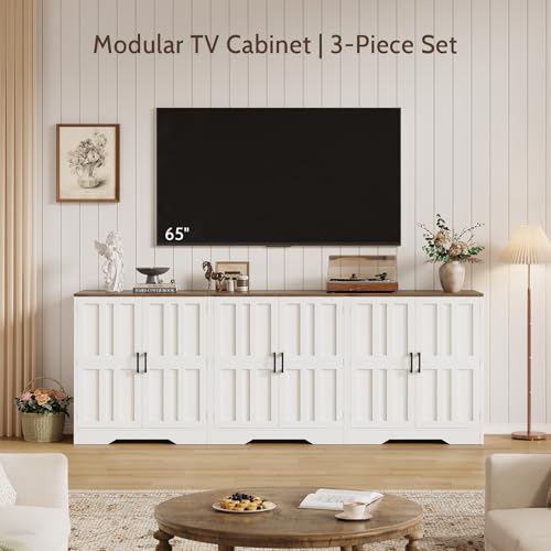 - [Modern Farmhouse Style] This buffet cabinet showcases a clean, streamlined design with a beautiful wood grain surface and crisp white finish. It effortlessly blends rustic farmhouse charm with modern elegance, making it a perfect fit for cottage, contemporary, and traditional interiors alike.