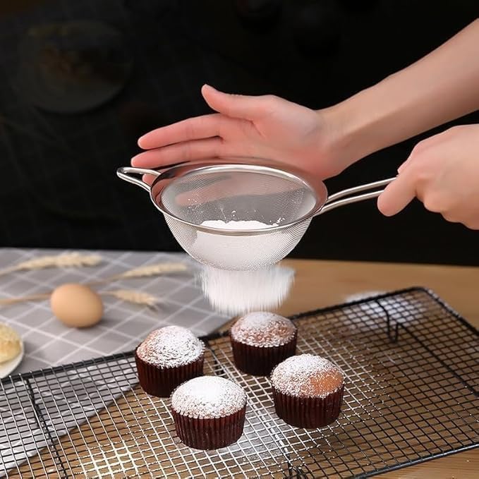 - Fine mesh straining without mess – Enjoy smooth tea, clear juice, and lump-free flour thanks to the fine stainless steel mesh that catches even small particles while liquids flow fast and clean.
