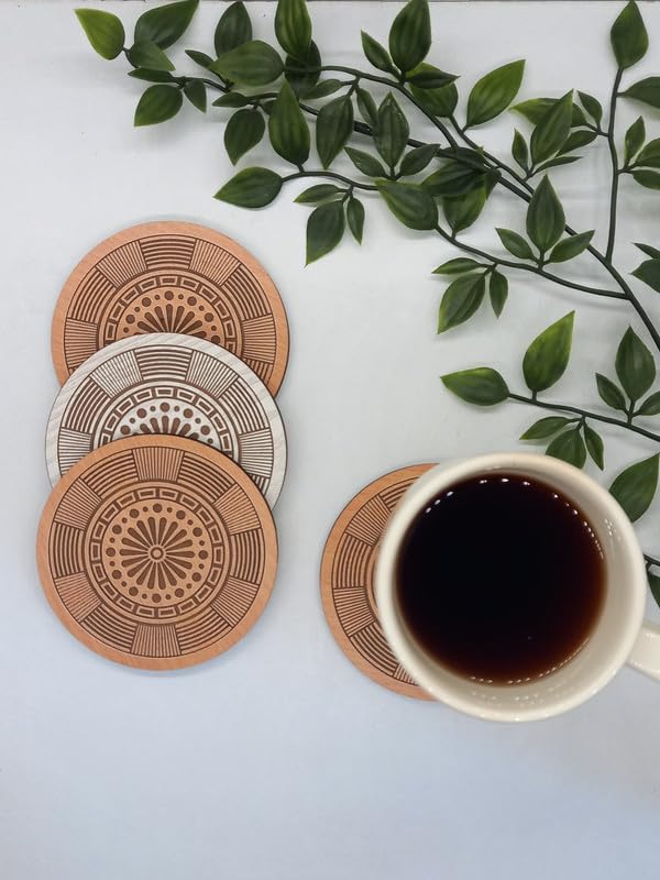SIGN & DESINE - SIGN & DESIGN Geometrical Geometric Design Round Wood Coaster 6 ml Thickness 9.5 x 9.5 x 0.6 cm - Havan R CO GE 04M
