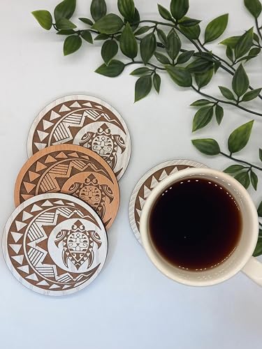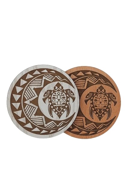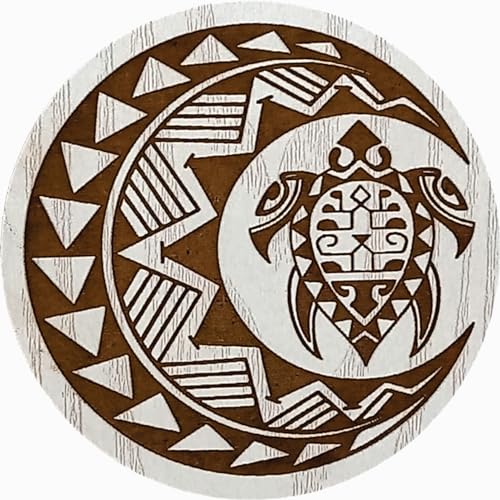 SIGN & DESINE - قاعدة أكواب خشب دائرية بتصميم فن إفريقي بحفر ليزر غائر وسمك 6 ملم من ساين اند ديزاين، مقاس 9.5 × 9.5 × 0.6 سم - لون بيج، موديل RCO AF 02L