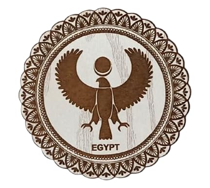 SIGN & DESINE - قاعدة أكواب/كوستر دائرية من الخشب بتصميم فرعونى بحفر ليزر غائر للصقر الملكى، سُمك 6 ملم من ساين اند ديزاين، مقاس 0.6 × 9.5 سم، بيج