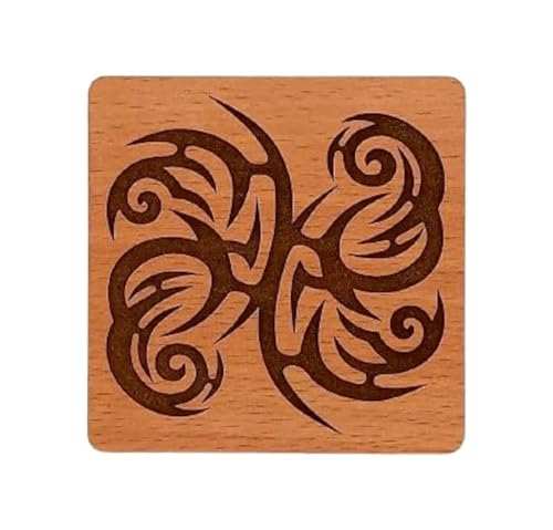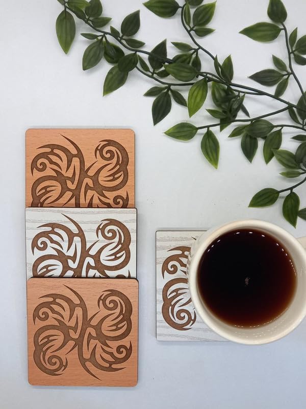 SIGN & DESINE - Sign & DesignE Square Wood Coaster with Floral Art Designs Recessed Laser Engraving, 6 ml Thickness 9.5 x 9.5 x 0.6 cm - Havan SCO FL 04M