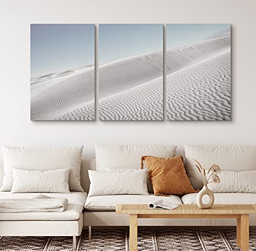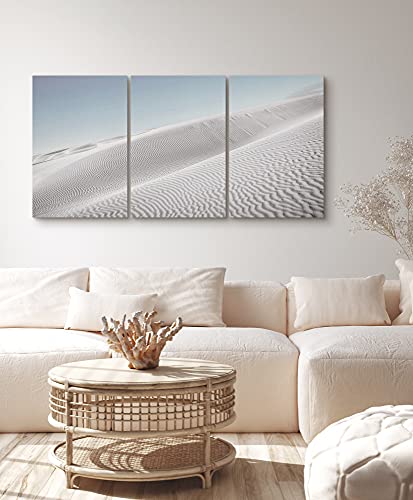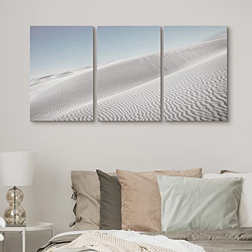 SIGNFORD - لوحات جدارية رقمية من القماش بتصميم عصري مبسط كثبان بنمط رملية وسماء لون ازرق فاتح وصحراء طبيعية تبعث الهدوء والاسترخاء مكونة من 3 قطع مقاس 16×24 بوصة لغرفة المعيشة وغرفة النوم والمكتب من ساينفورد