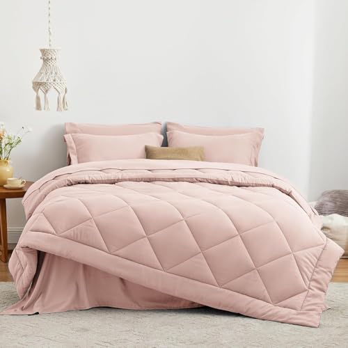 - ★Unique Design: The box stitching could prevent the comforter filling from shifting and bunching no matter how you twist and turn in your bed. This design makes this comforter last longer without having to change it frequently. Our fitted sheet has an elastic 14” deep pocket, which will fit almost any mattress. The envelope closure pillowcases to keep your pillows secure and will not fall down in sleep.