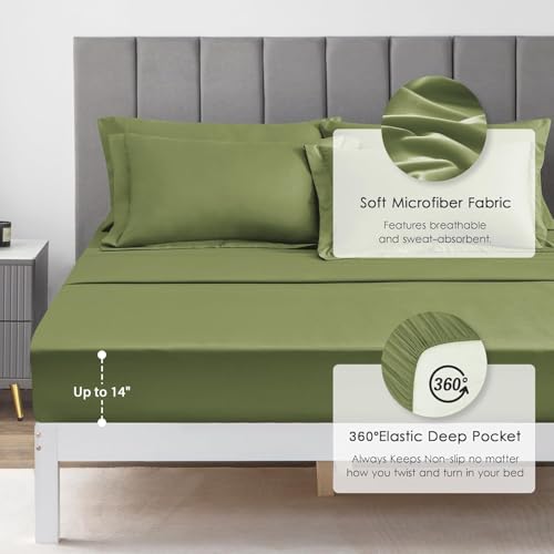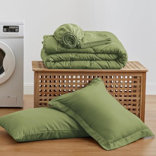 Signoola - لحاف ثقيل من المايكروفايبر من سيجنولا، وزن 4.5 كيلوجرام، طقم من 6 قطع (بطانية لحاف واحدة، 2 كيس مخدة، ملاية بحواف تثبيت بأستك و2 مخدة)، (2.40 متر× 2.50 متر)، بطانية سرير مزدوجة للشتاء بلون أخضر