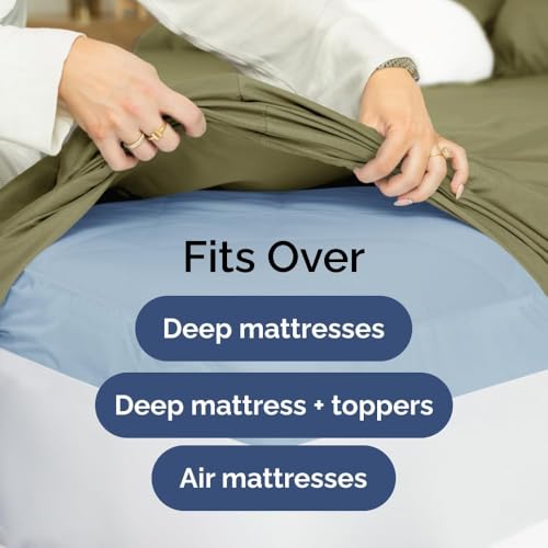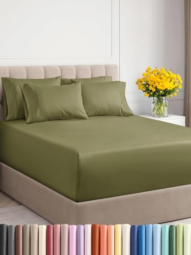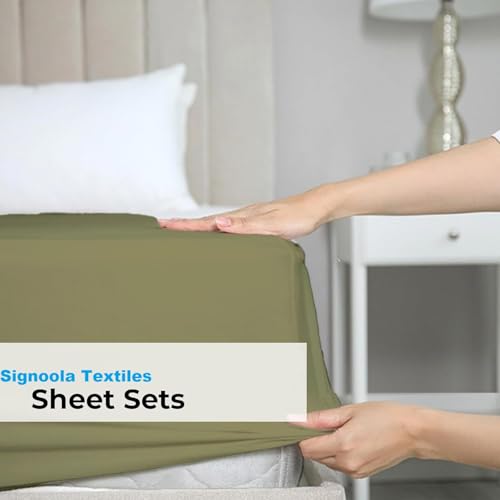 Signoola - طقم ملايات سرير بأستك مكون من قطعة واحدة - ملاءة مريحة مزودة بمسامات للتهوية وذات ملمس بارد بجودة الفنادق مع جيوب عميقة سهلة التركيب وفائقة النعومة من سيجنولا - لون أخضر زيتوني (1.80 × 2 متر)