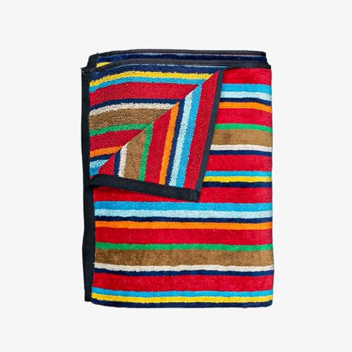 Signoola - منشفة شاطئ من القطن الفاخر من سيجنولا تجمع بين الراحة الفاخرة والاداء العملي مقاس 63 × 180 سم - اصدار خطوط صفراء متعددة الالوان